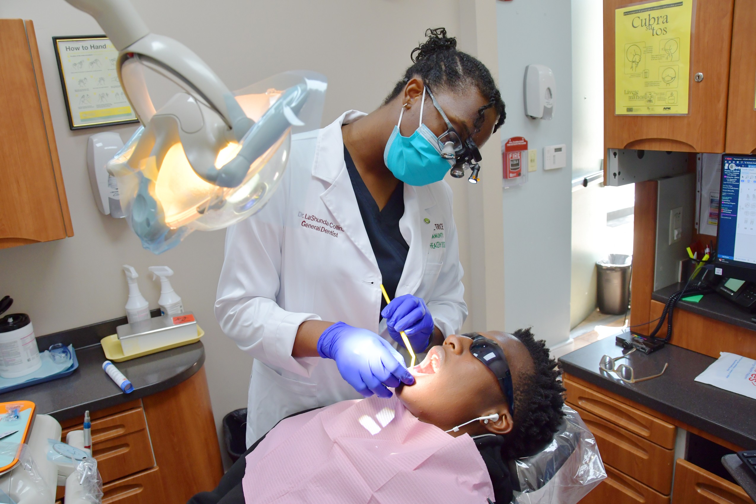 Photo 2: Dr. Lashunda Collins, DDS, provides dental services to a young patient during Give Kids A Smile Day, hosted by Jessie Trice Community Health System in collaboration with the Miami-Dade County Dental Society. (Photo by Audrey LaPalme, Sonshine Communications).